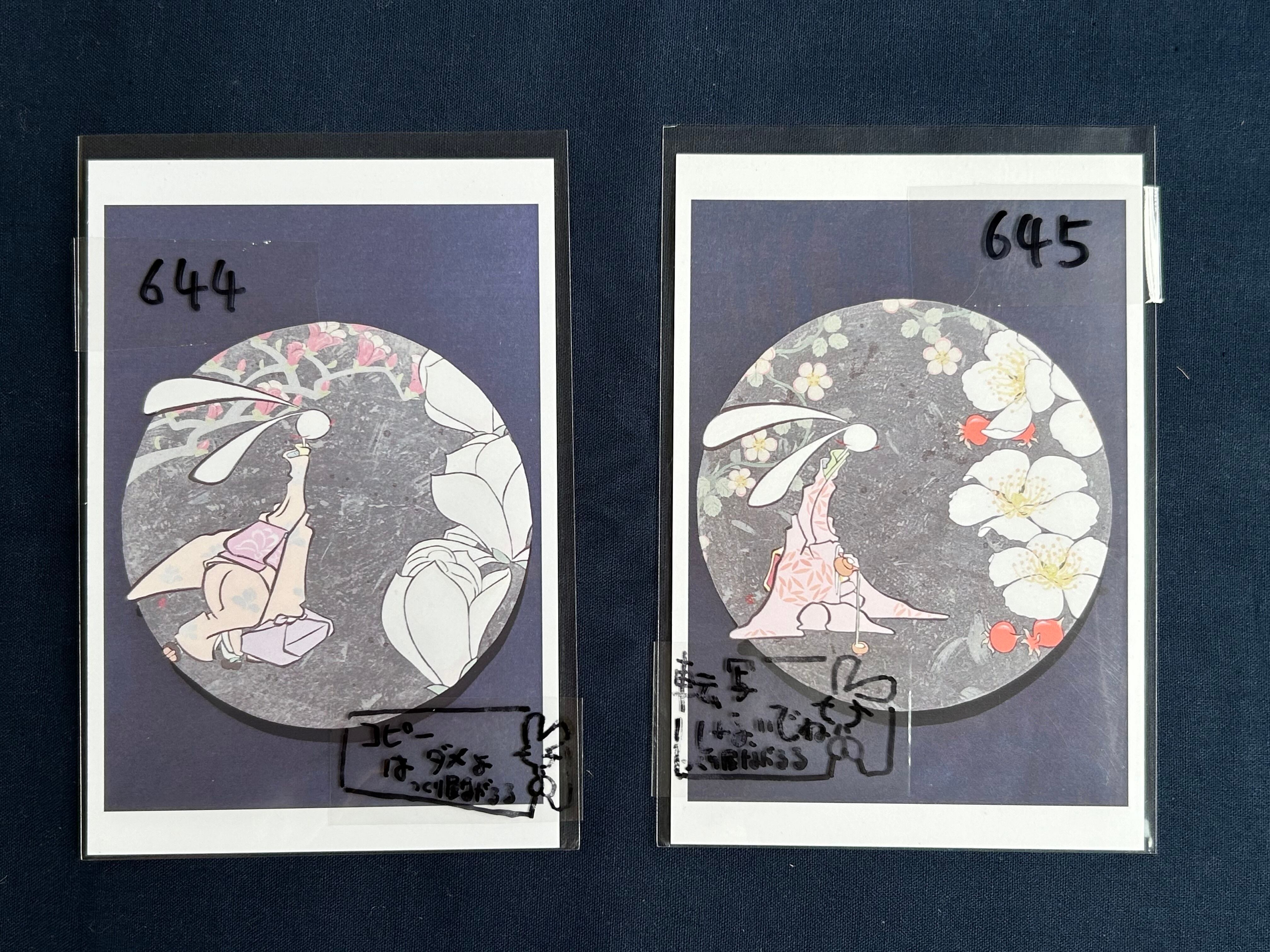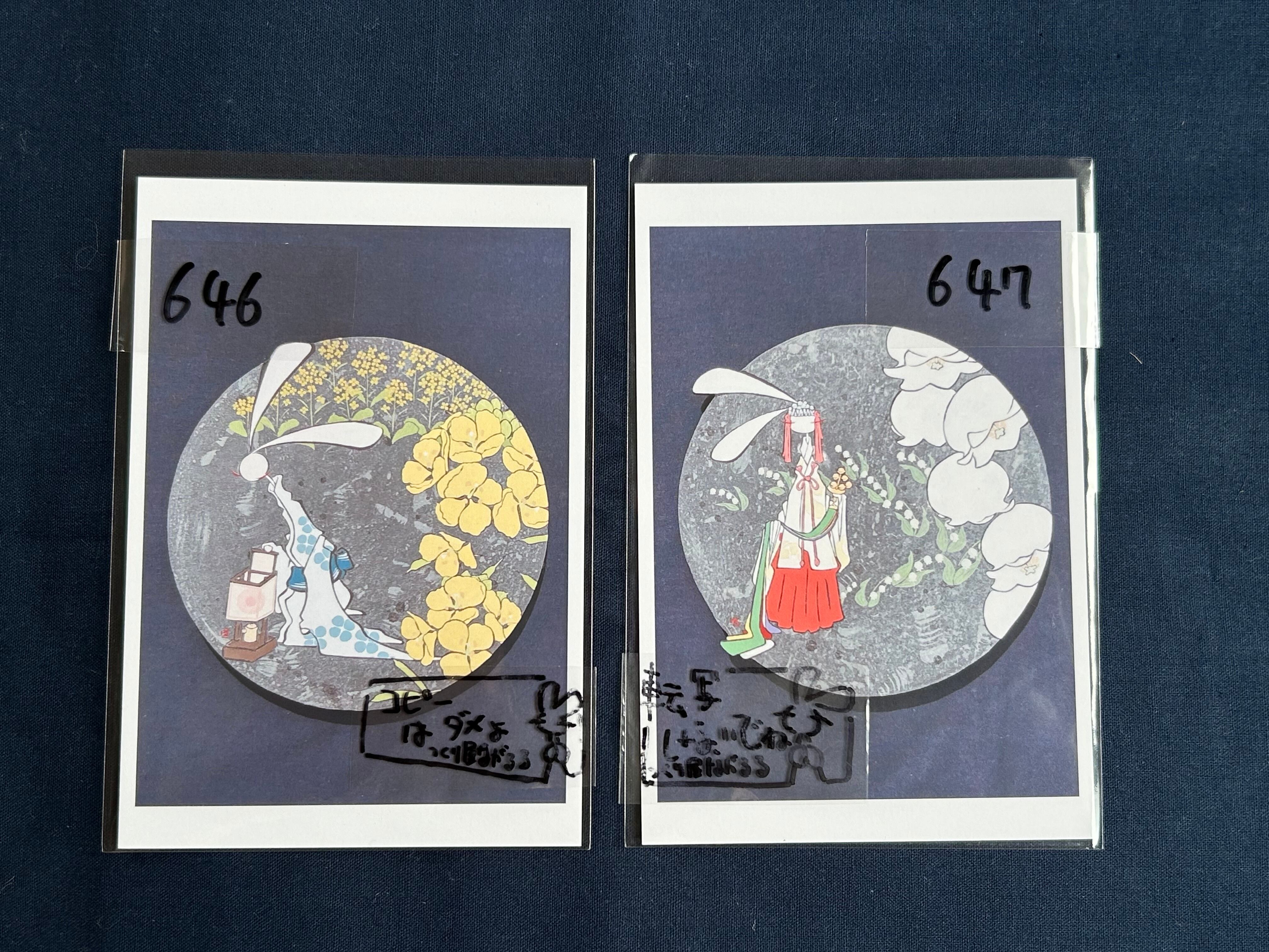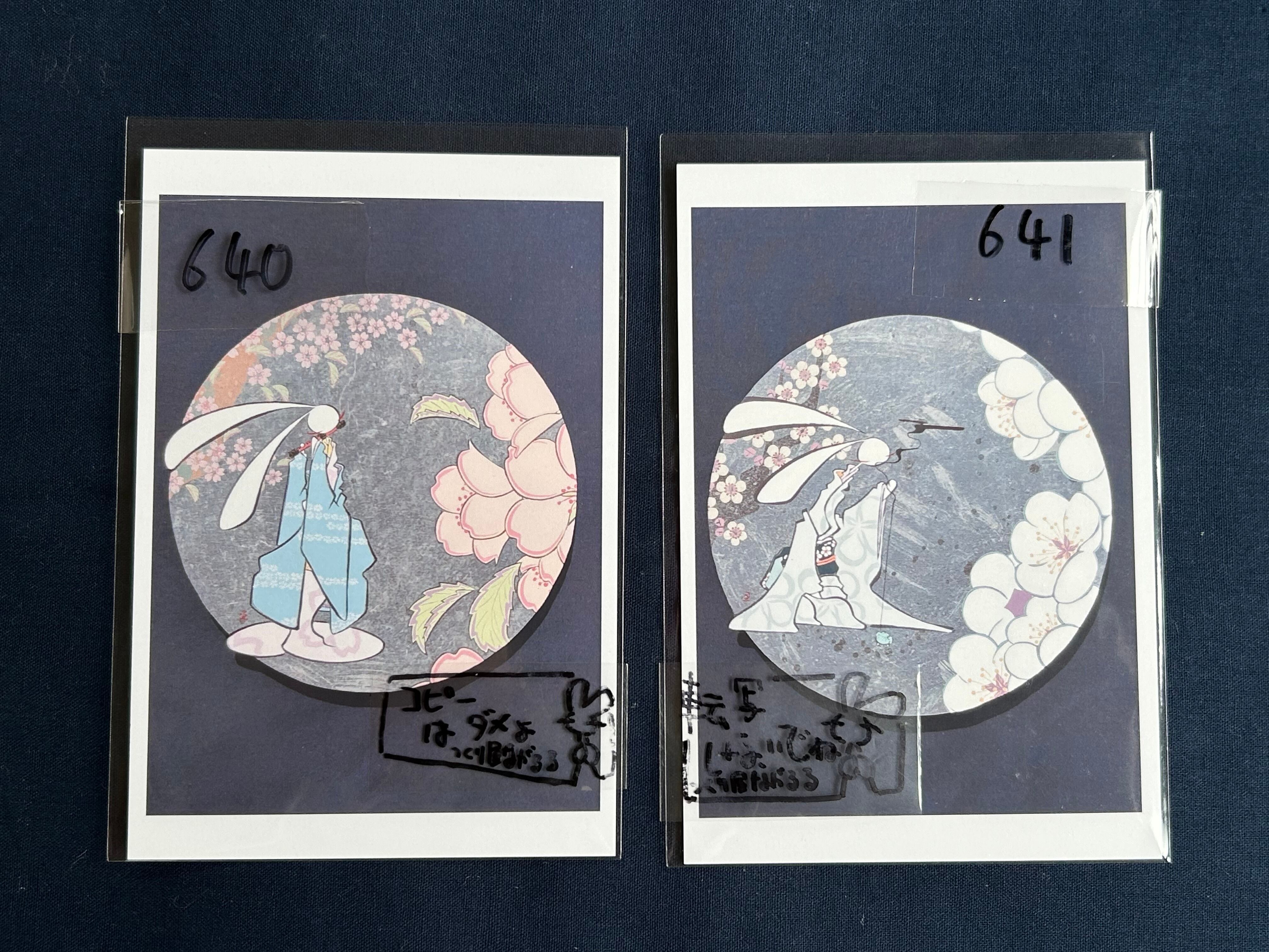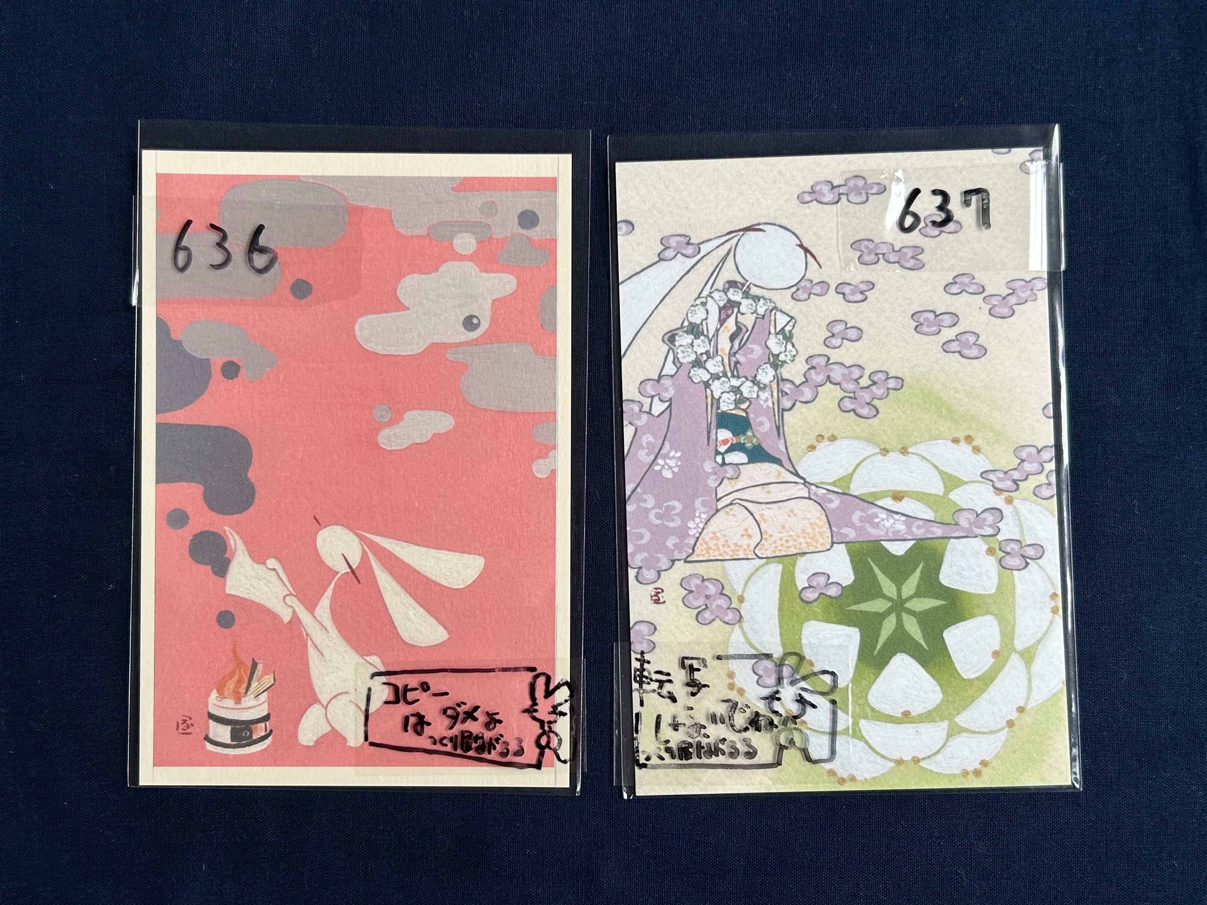サイズはポストカードサイズ、裏面は真っ白なのでハガキとしてご利用の場合は一番上に郵便はがきとご記入ください、メッセージカードとしても使えますよ