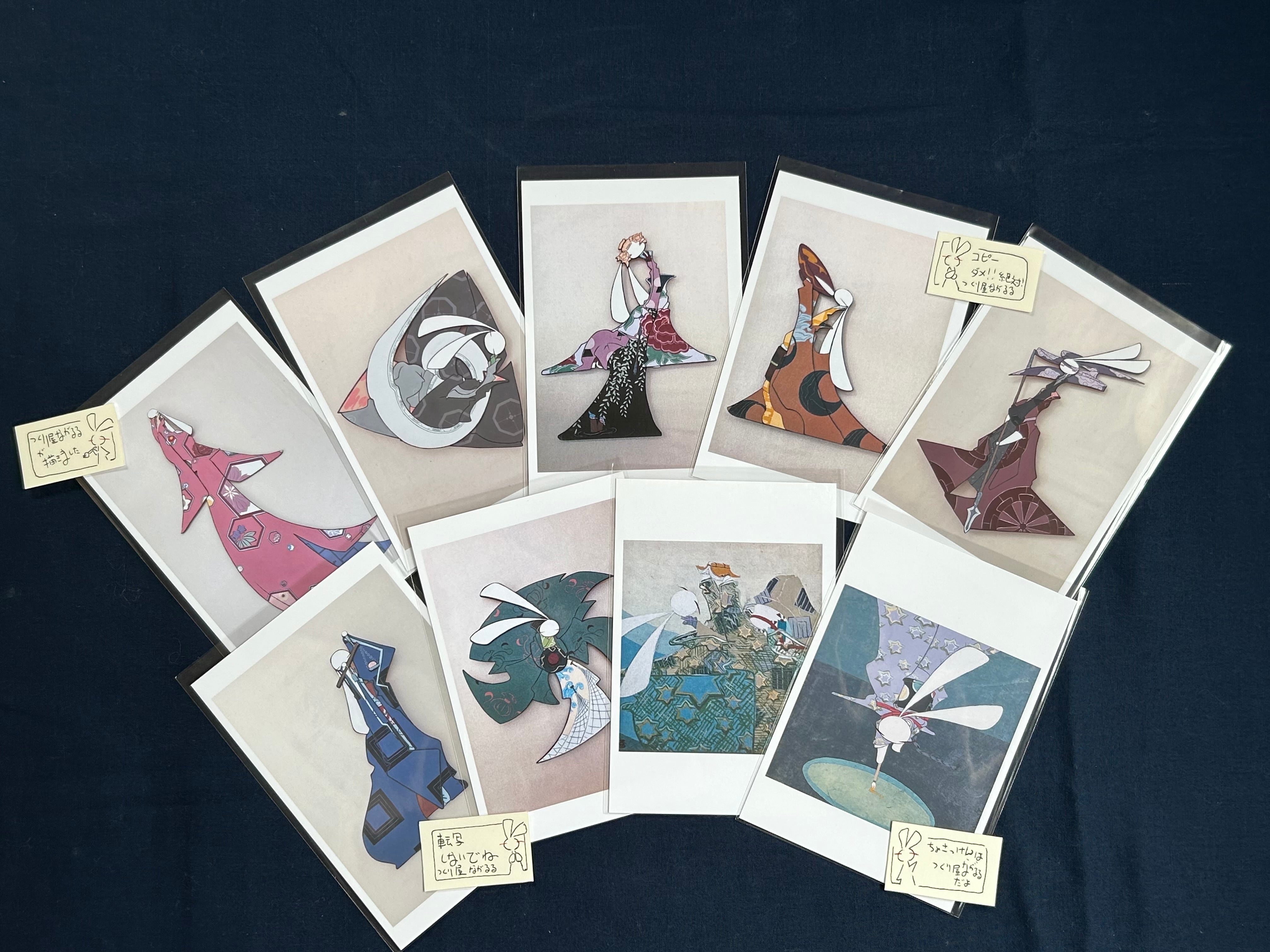 サイズはポストカードサイズ、裏面は真っ白なのでハガキとしてご利用の場合は一番上に郵便はがきとご記入ください、メッセージカードとしても使えますよ