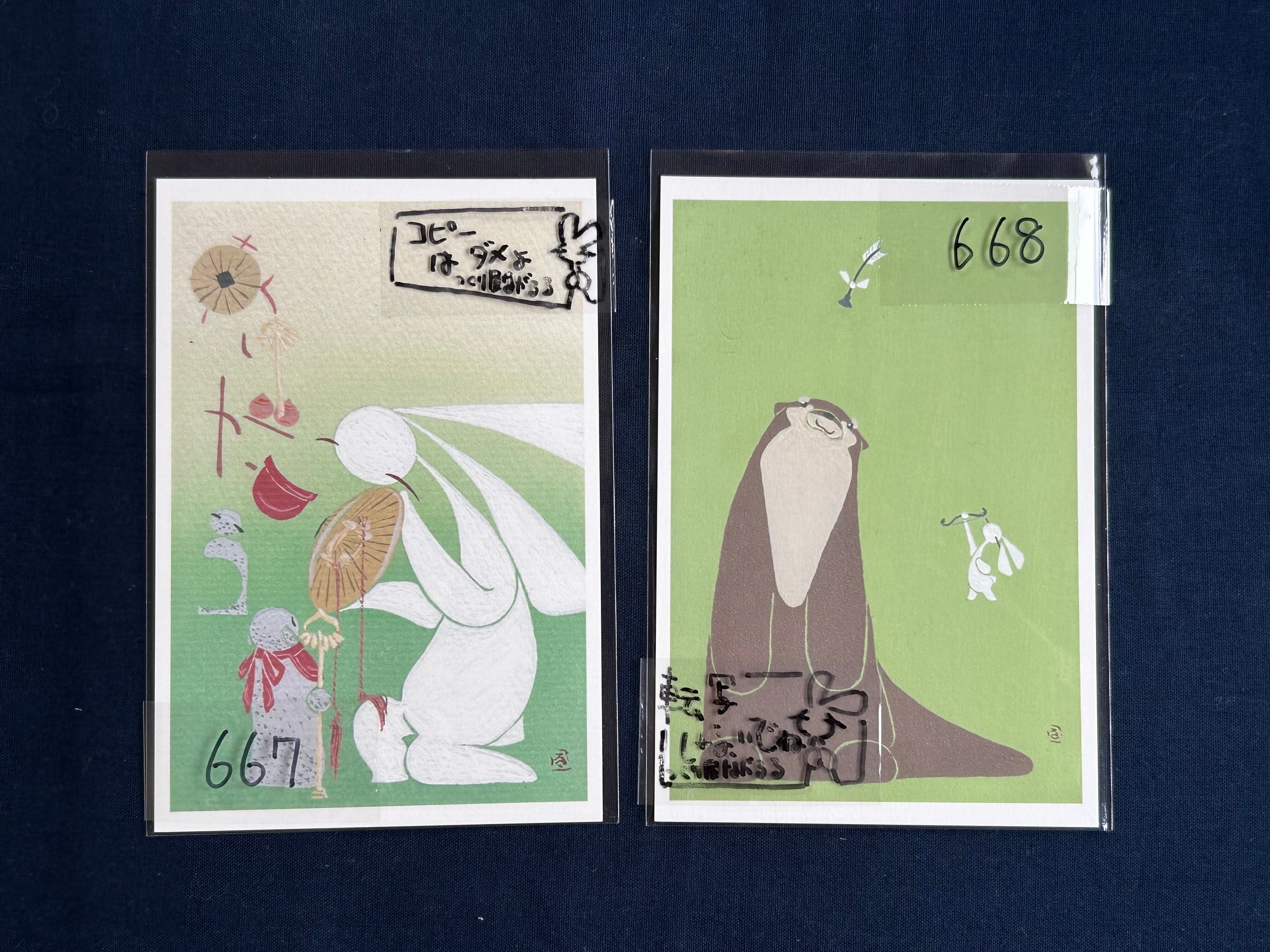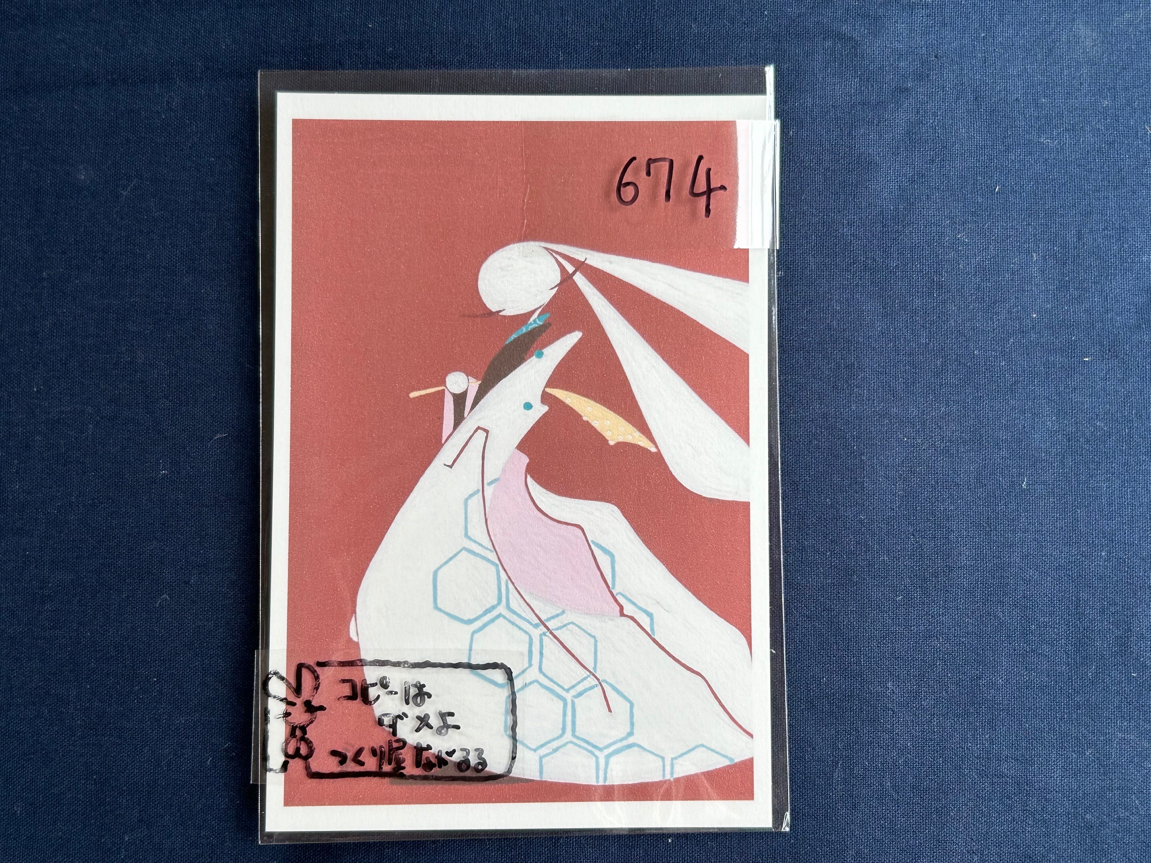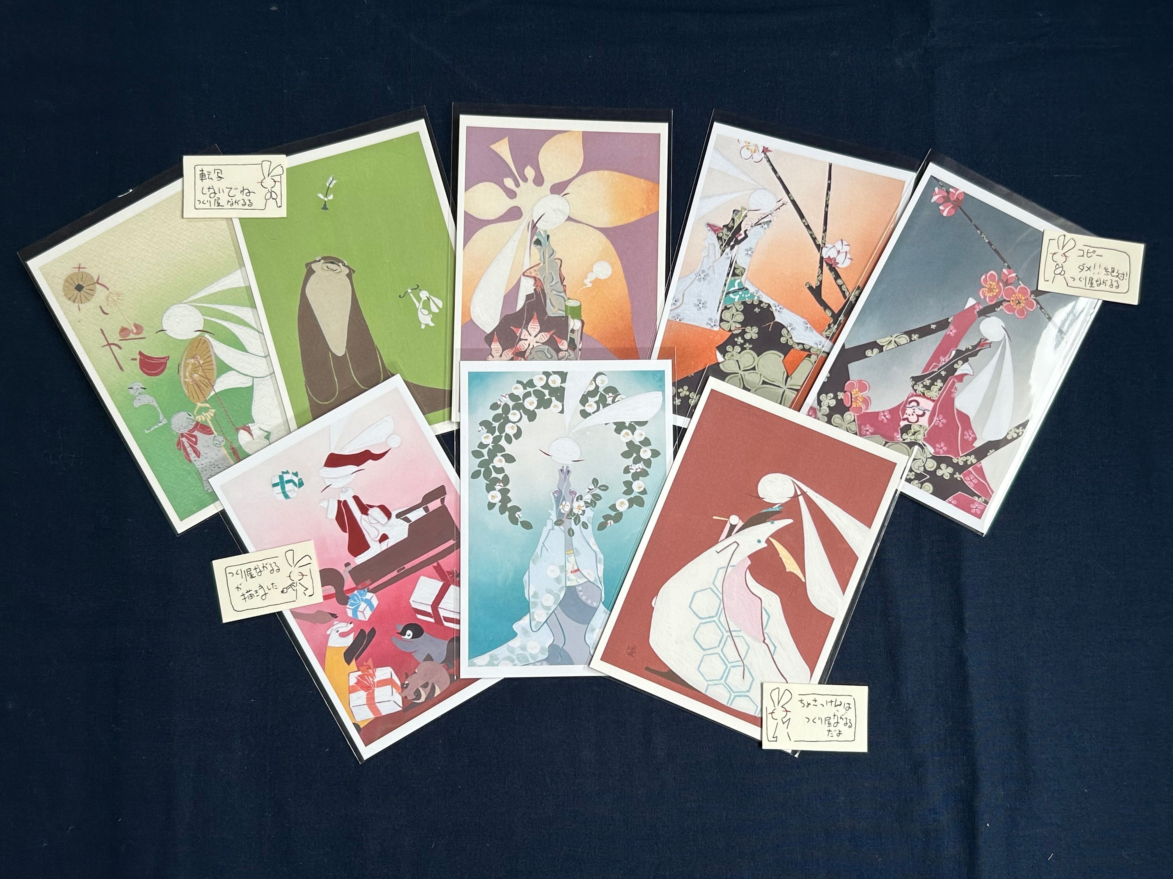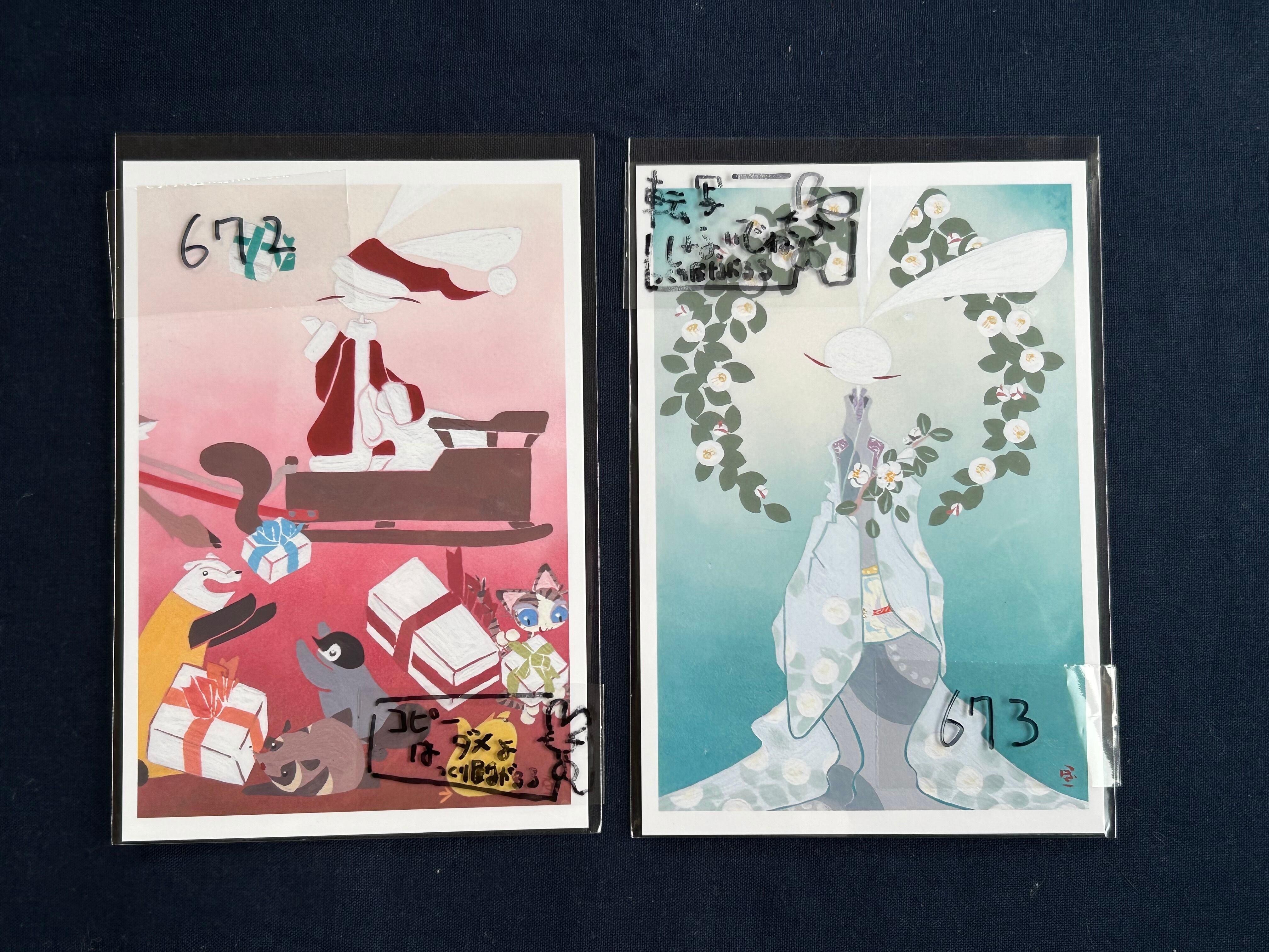 サイズはポストカードサイズ、裏面は真っ白なのでハガキとしてご利用の場合は一番上に郵便はがきとご記入ください、メッセージカードとしても使えますよ