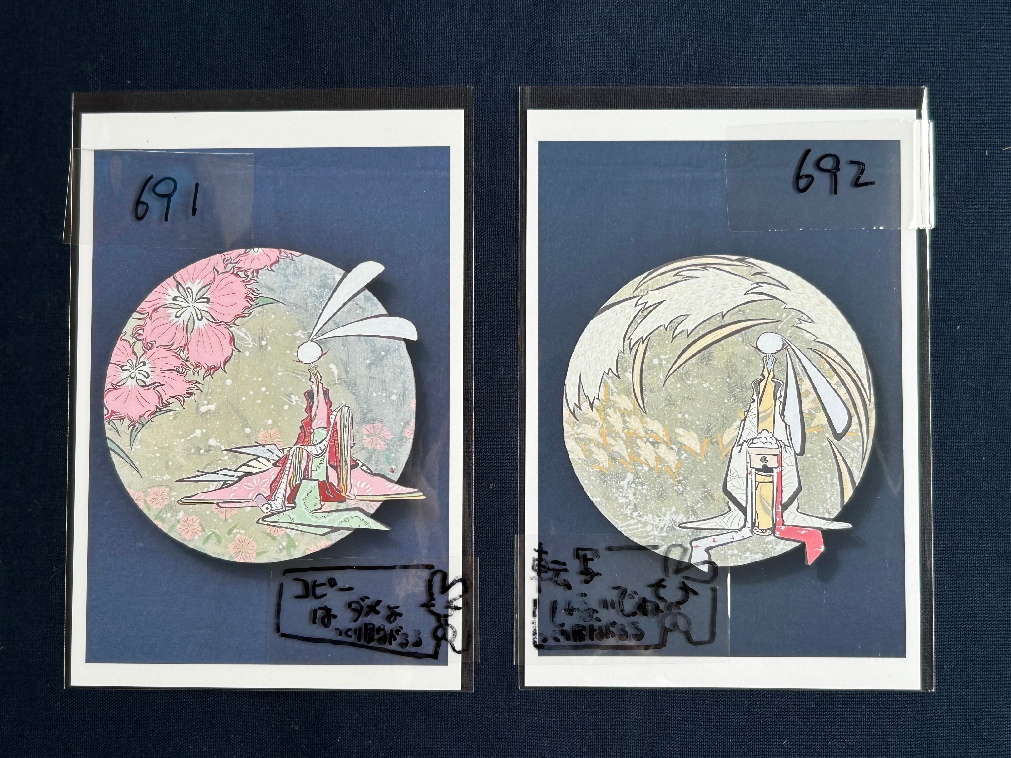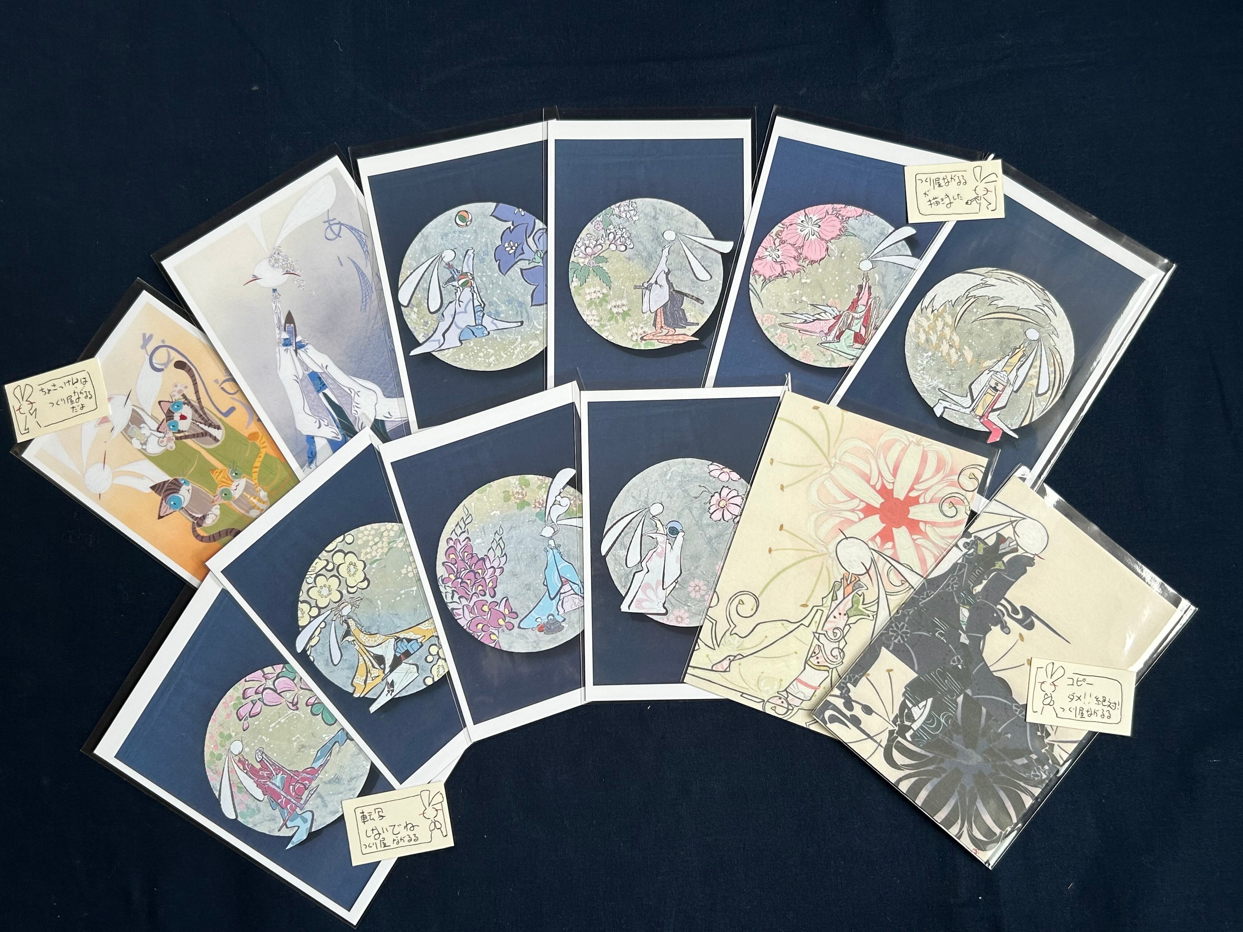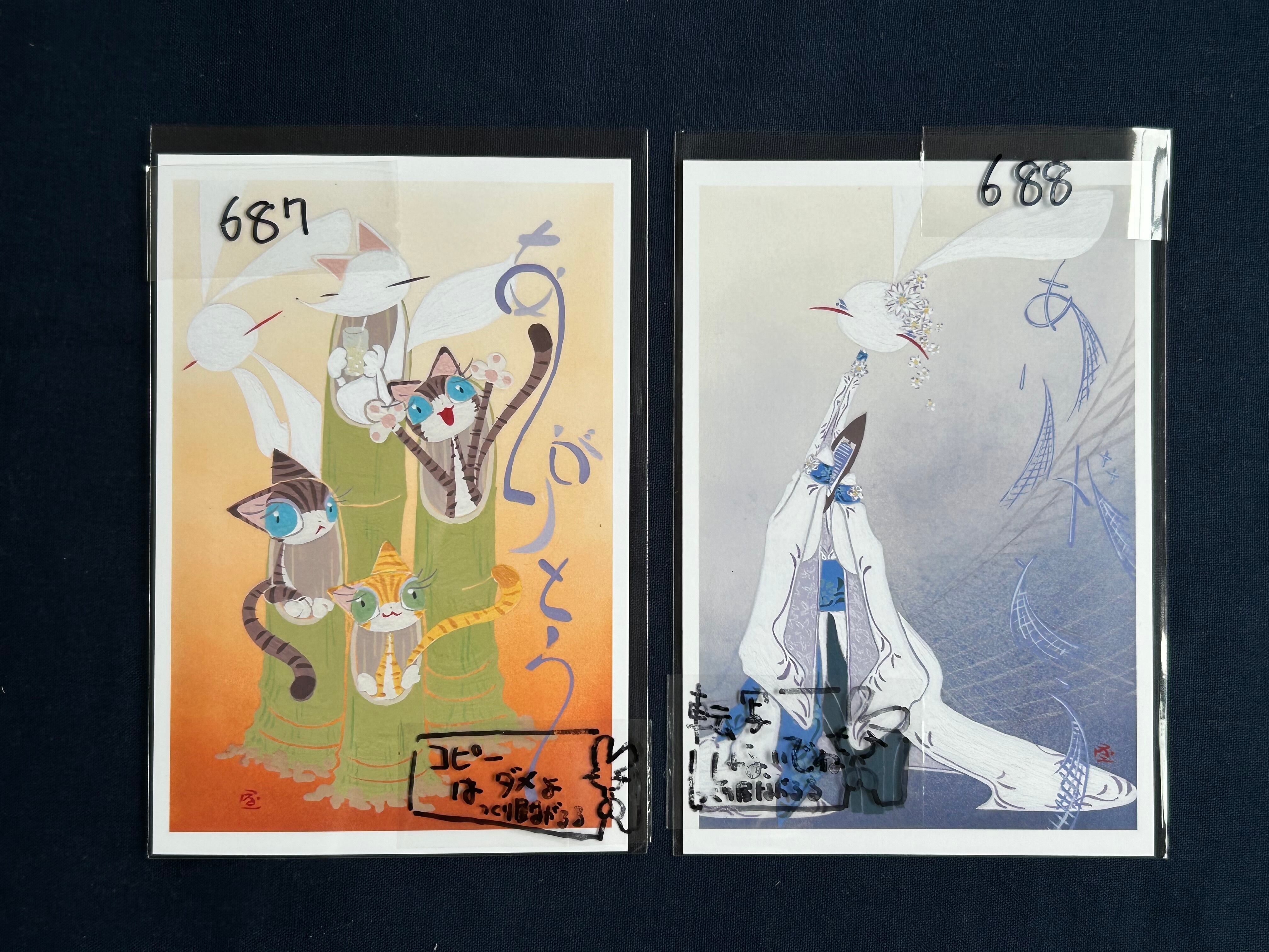 サイズはポストカードサイズ、裏面は真っ白なのでハガキとしてご利用の場合は一番上に郵便はがきとご記入ください、メッセージカードとしても使えますよ