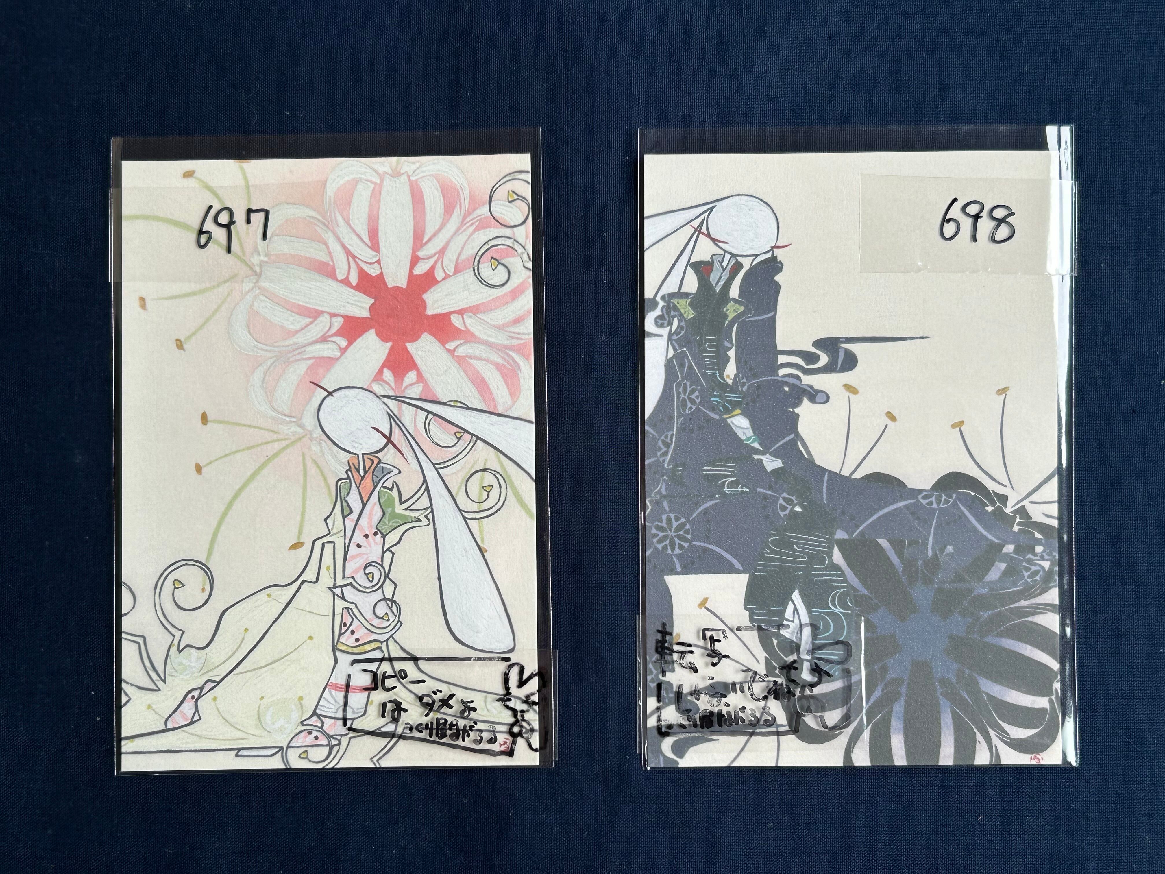 タイトルは687ありがとにじゅう、688ありがとぬの、689桔梗、690藤袴、691撫子、692尾花、693萩、694女郎花、695葛、696秋桜、697はなしろひがんばな、698はなくろひがんばな