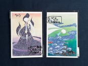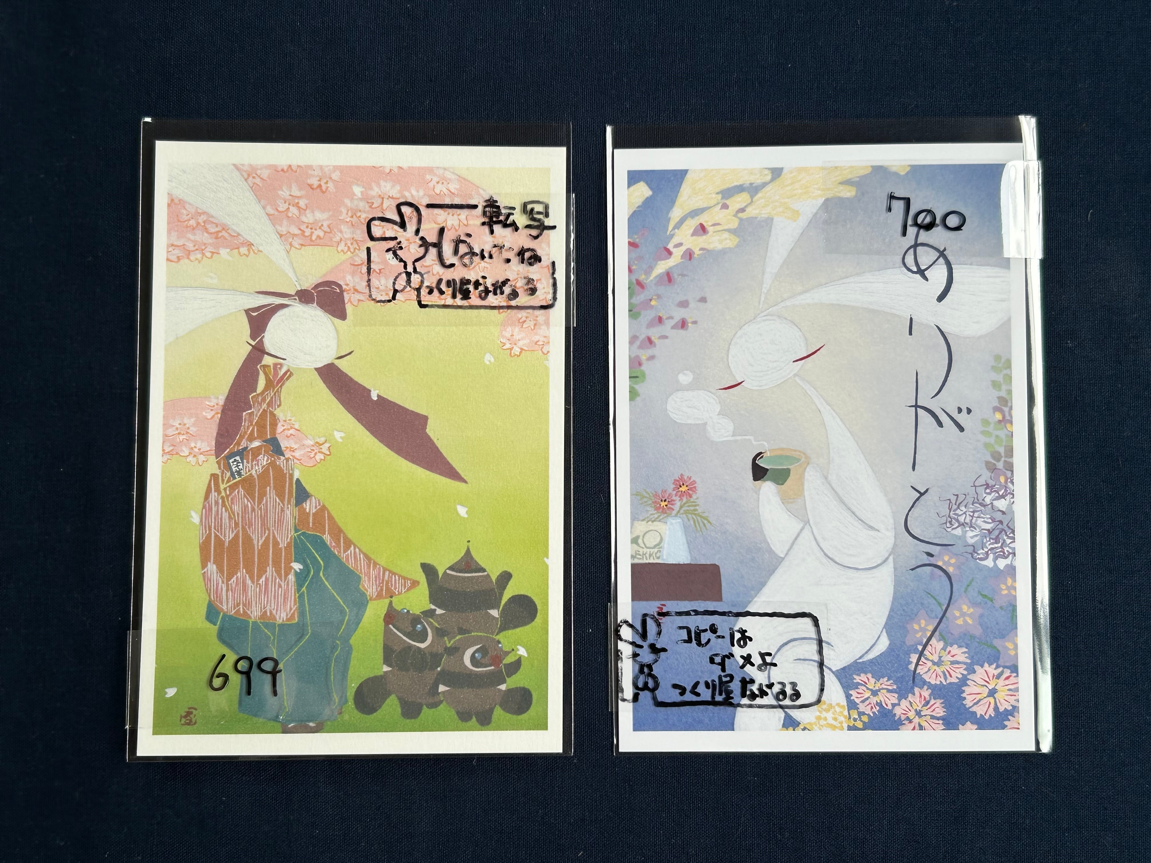 サイズはポストカードサイズ、裏面は真っ白なのでハガキとしてご利用の場合は一番上に郵便はがきとご記入ください、メッセージカードとしても使えますよ