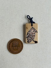 大きさはだいたい縦3センチ、横1.8センチ、奥行き0.5センチほどで、そこに紐がついています