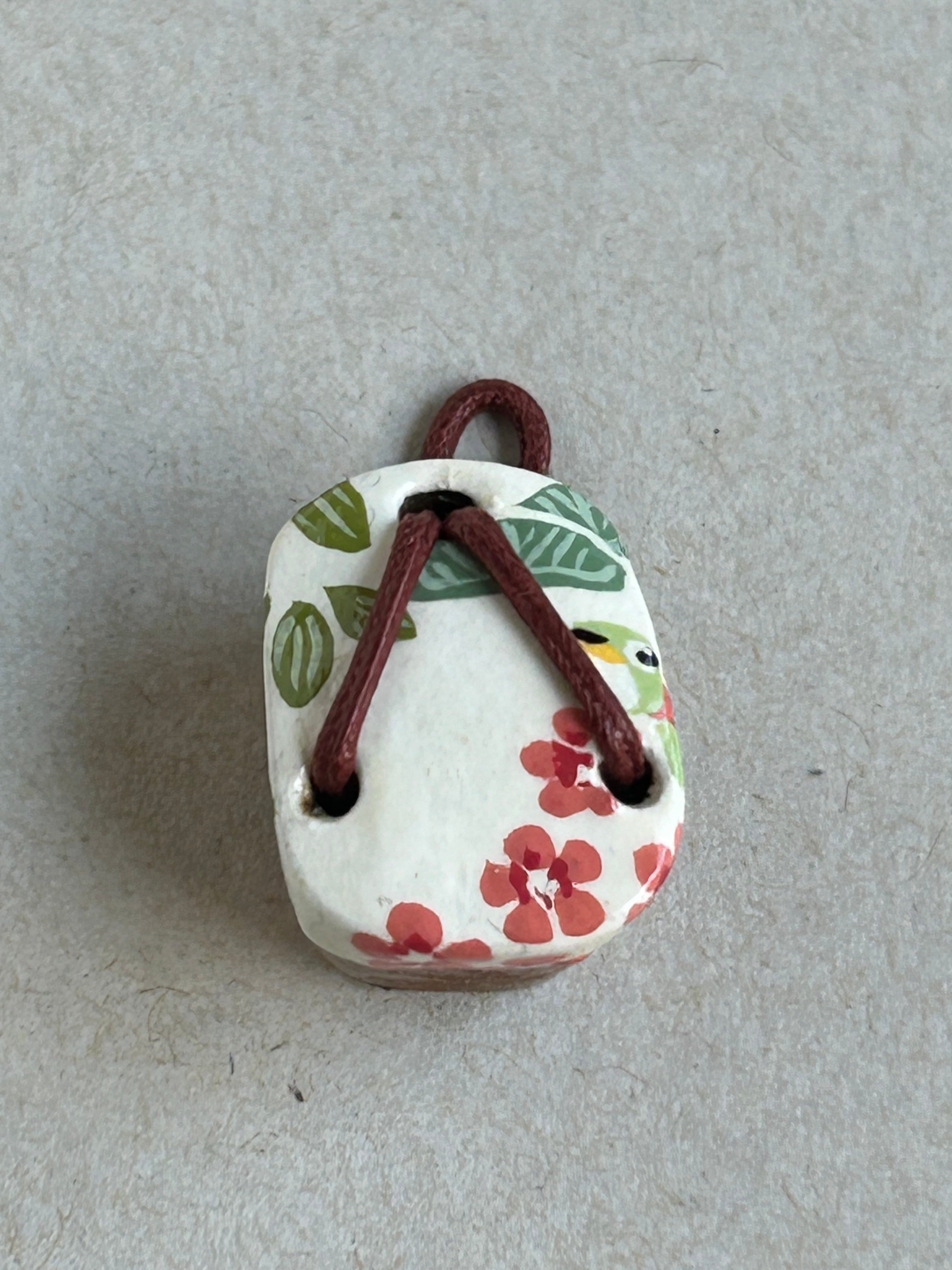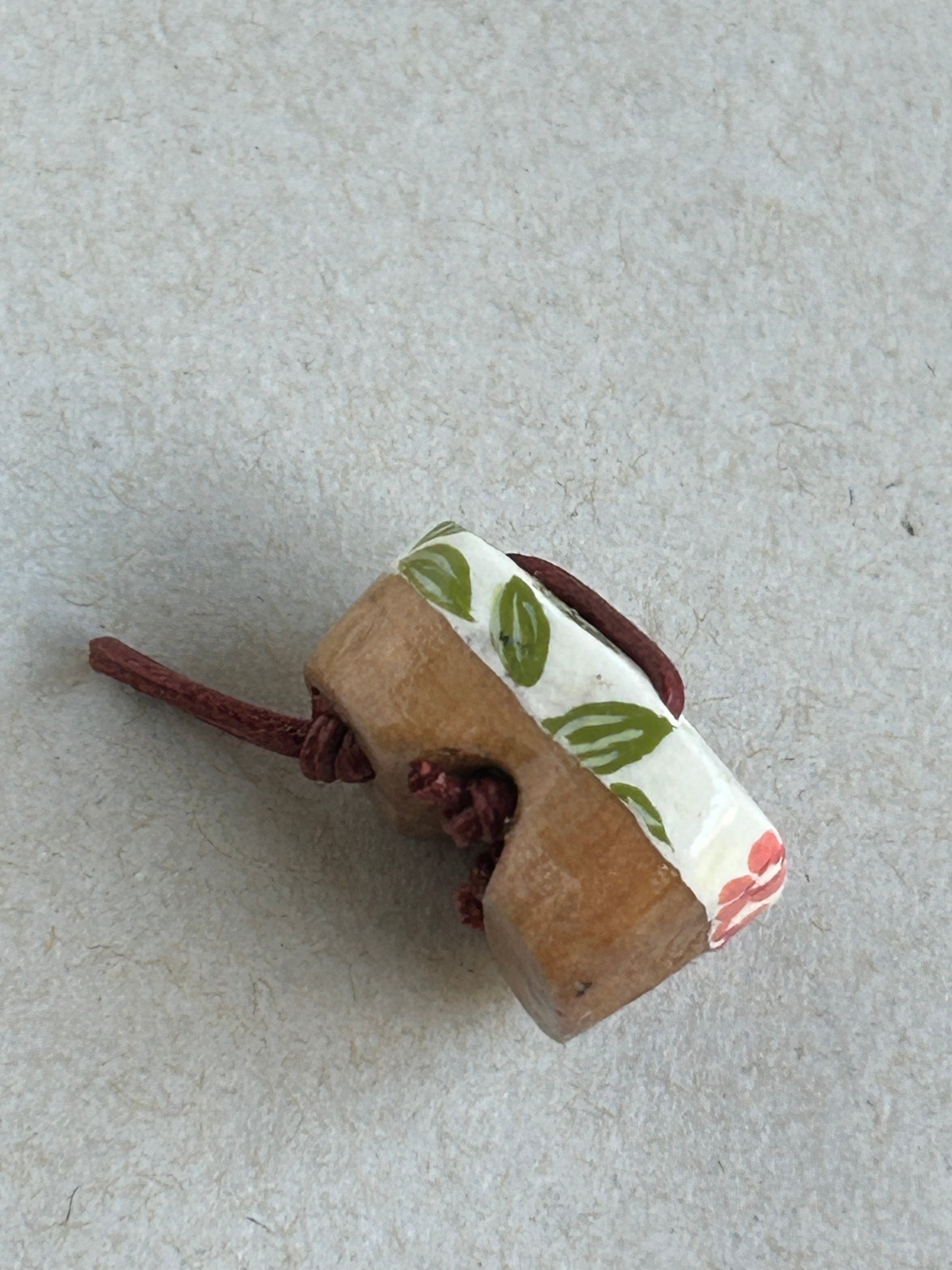大きさはだいたい縦2センチ、横1.6センチ、奥行き1.1センチほどで、そこに紐がついています