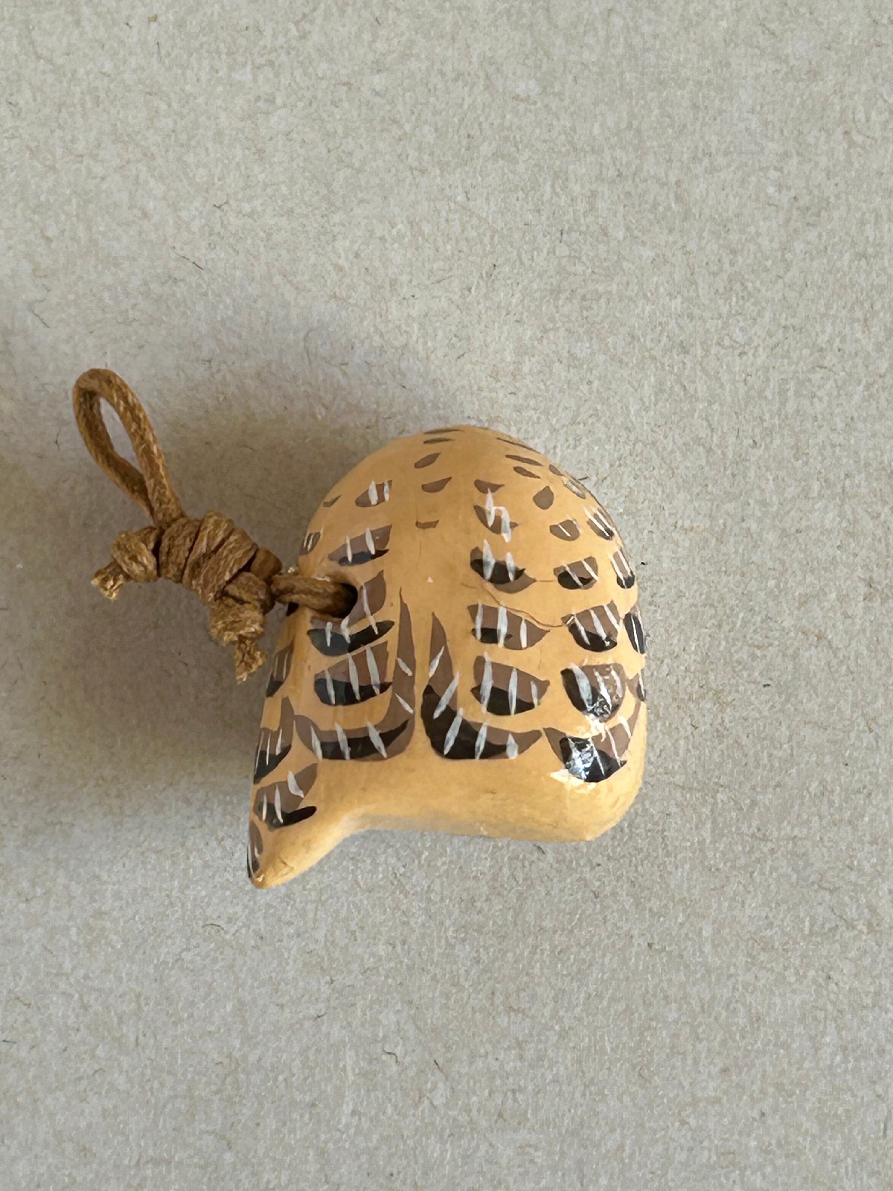 大きさはだいたい縦2.5センチ、横2センチ、厚さは1.2センチほどで、そこに紐がついています
