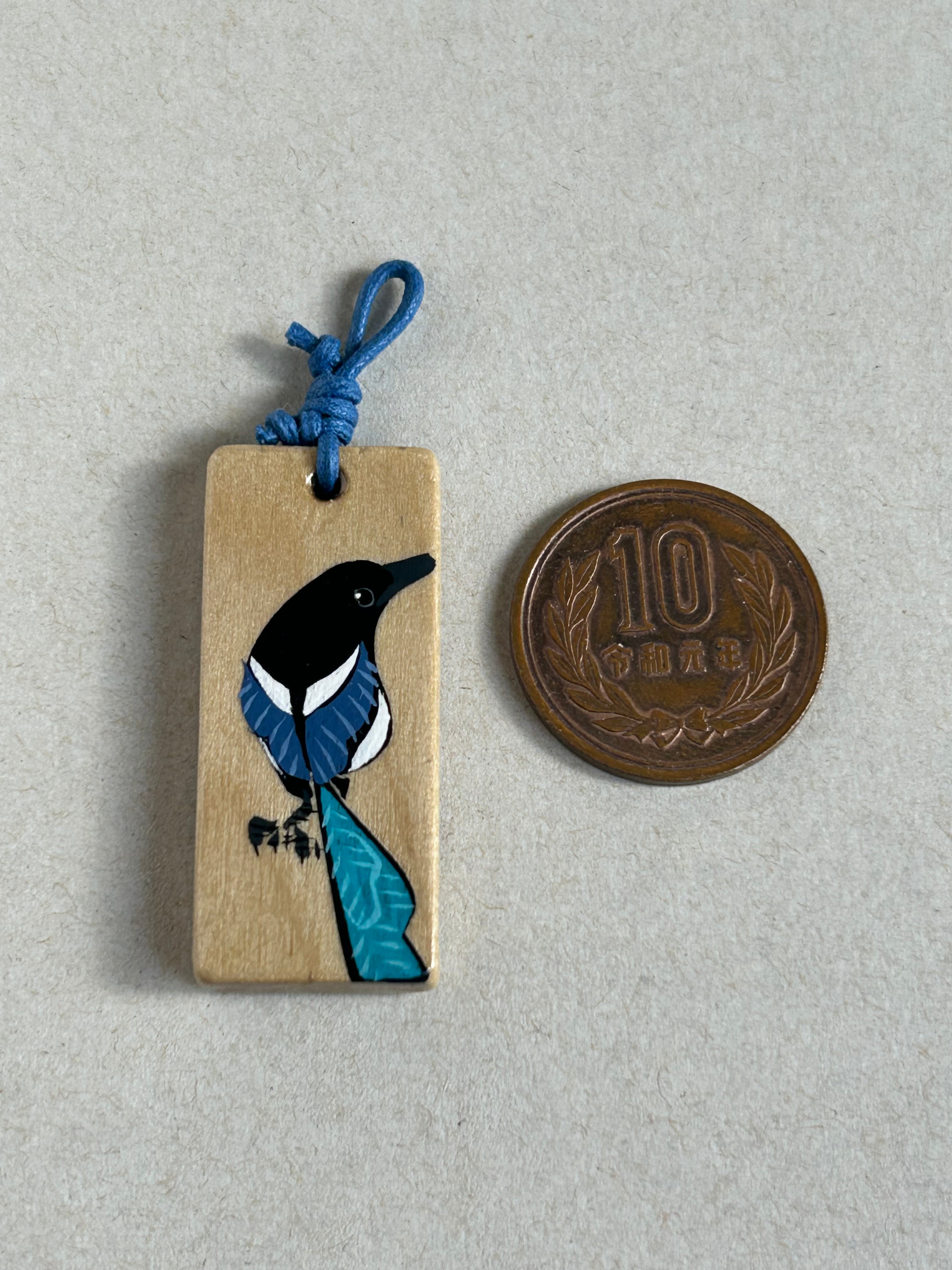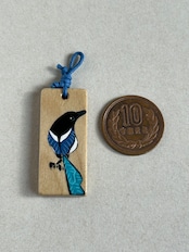 大きさはだいたい縦3.9センチ、横1.7センチ、厚さは0.4センチほどで、そこに紐がついています