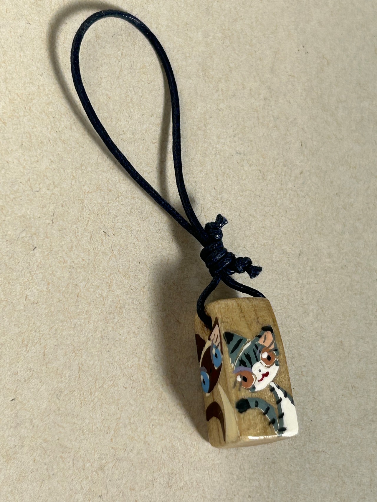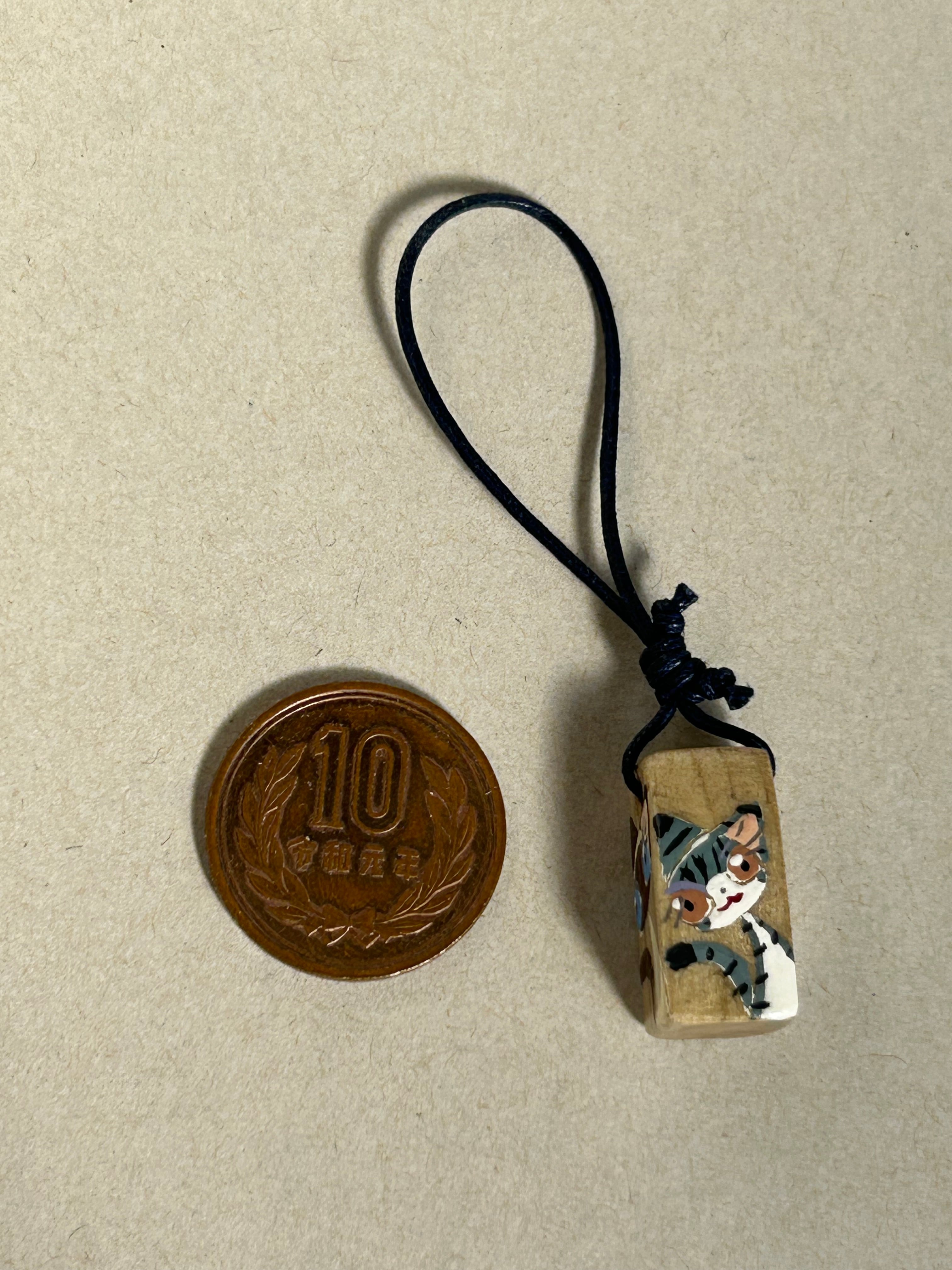 大きさはだいたい縦2センチ、横1センチ、厚さは1センチほどで、そこに紐がついています