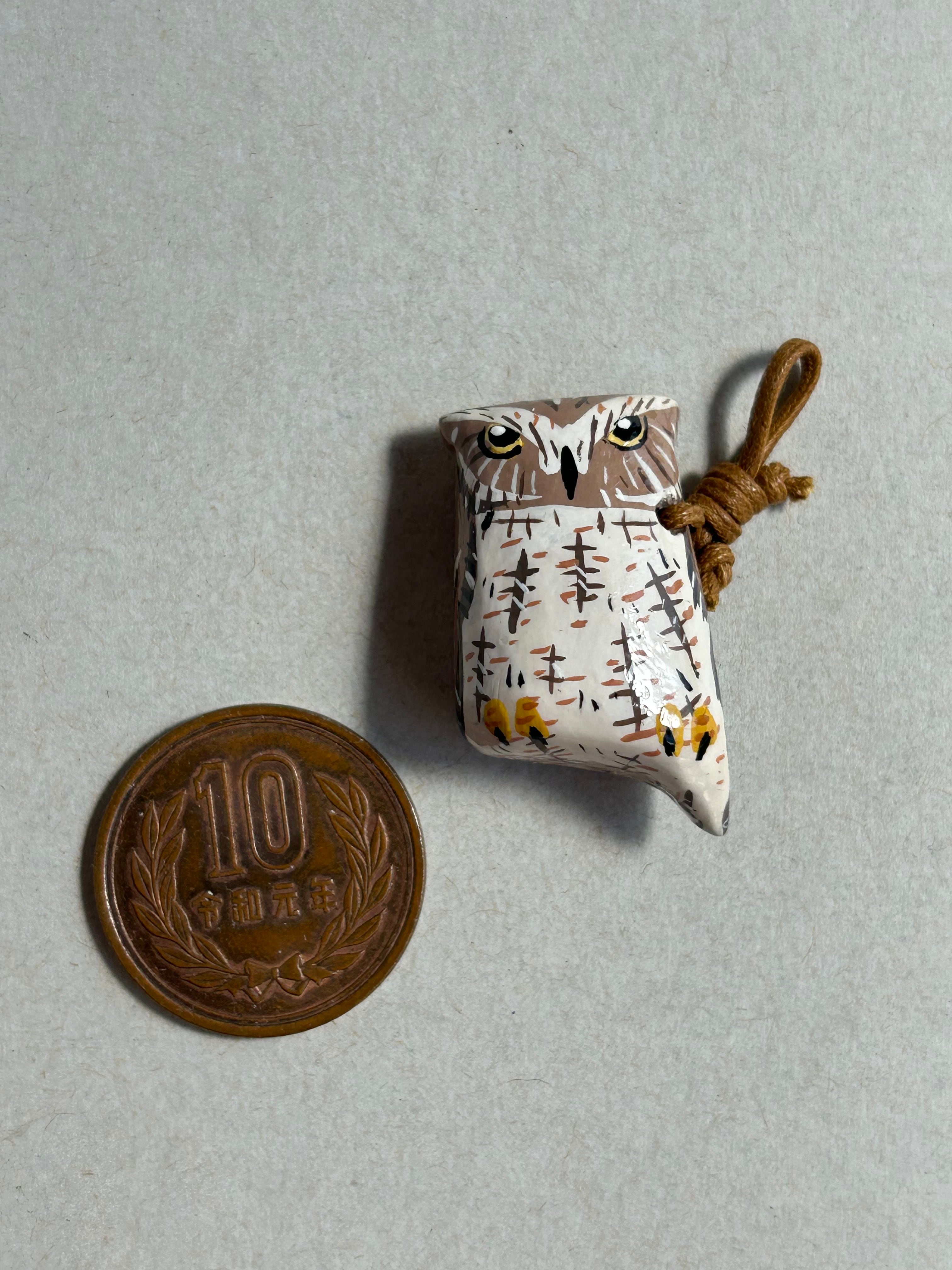 大きさはだいたい縦3センチ、横2センチ、厚さは1.2センチほどで、そこに紐がついています